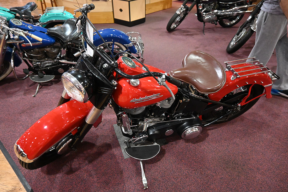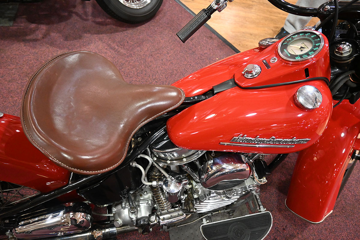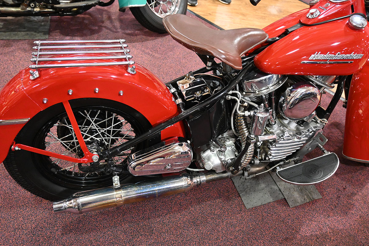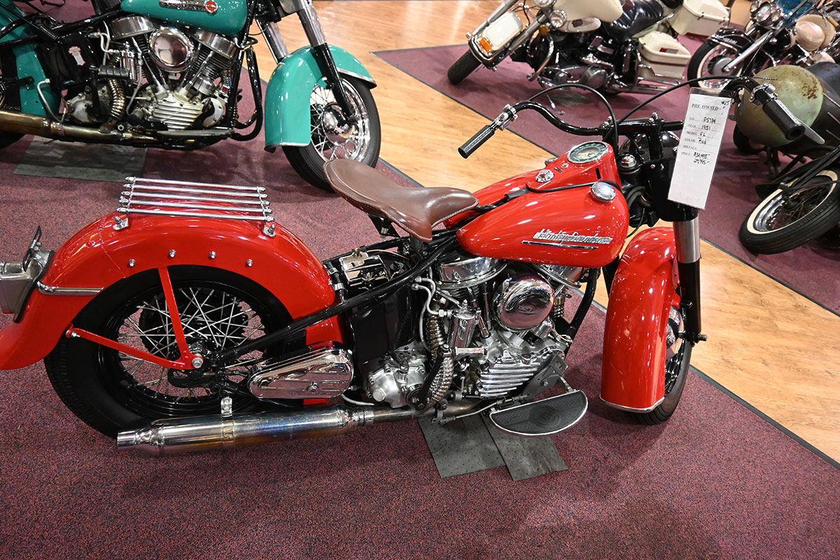 This 1951 Harley-Davidson FL features classic Panhead styling finished in a bold red.