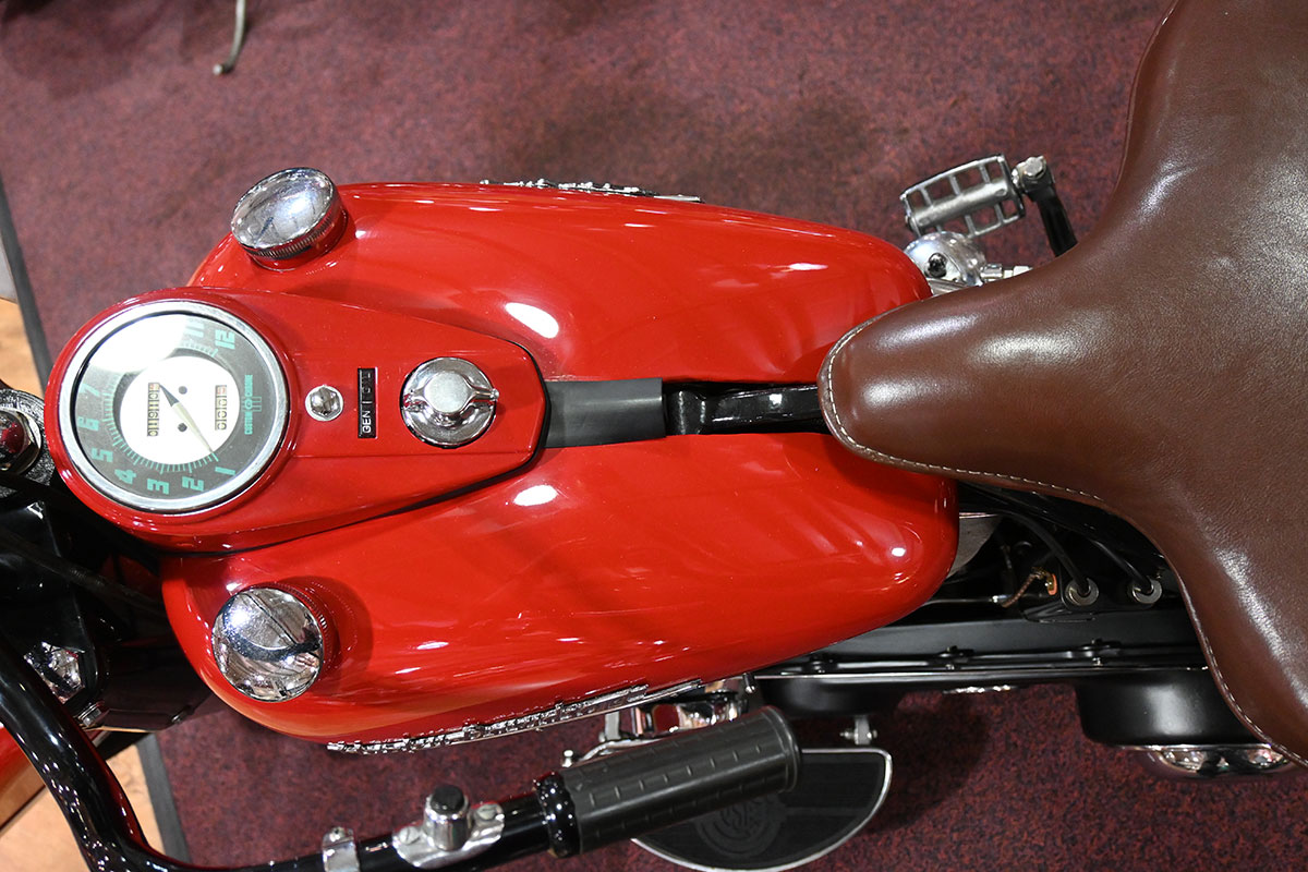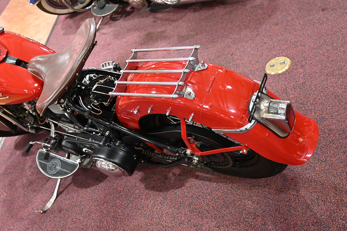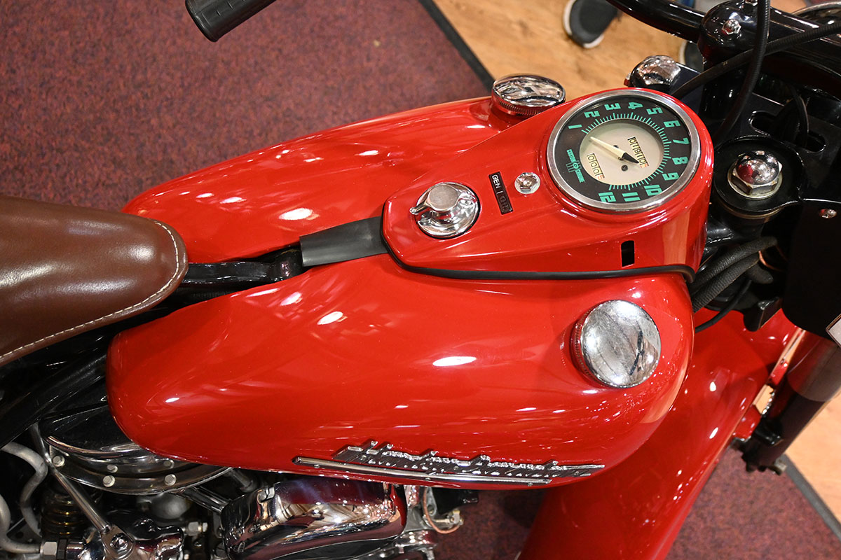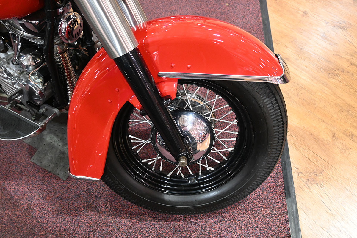This 1951 Harley-Davidson FL features classic Panhead styling finished in a bold red.