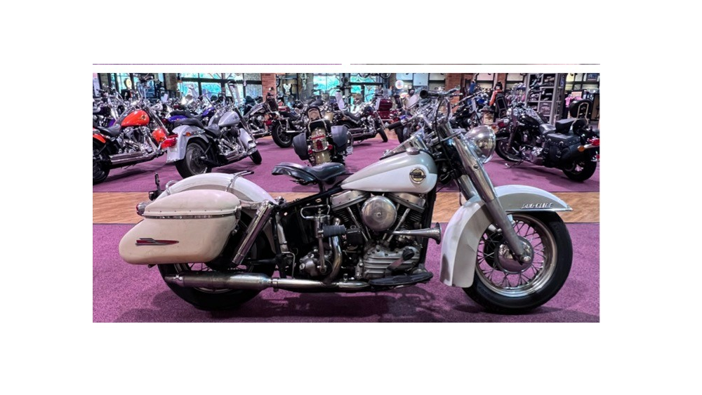 This 1958 Harley-Davidson FL is a well-preserved example of late-’50s Panhead heritage. Finished in a white and gray color combination, it has the classic look and solid presence that made these bikes legendary.
