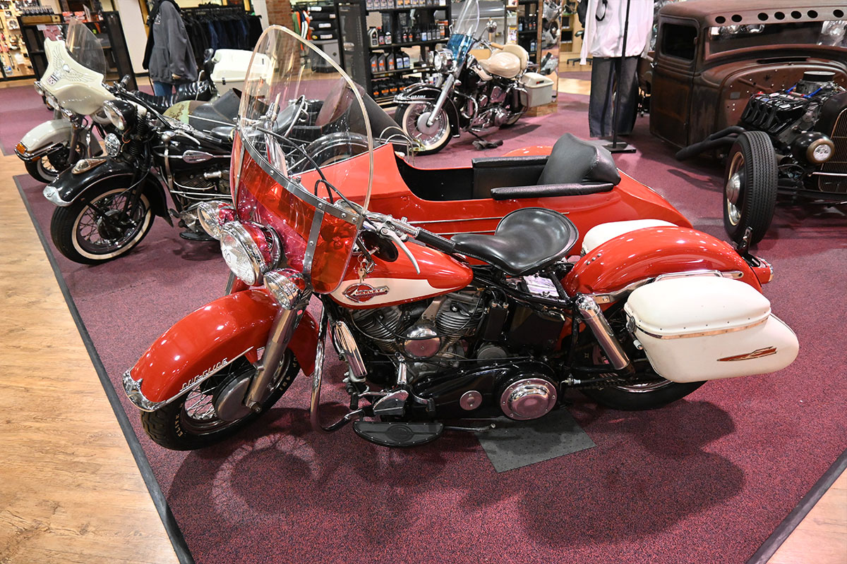 A stunning vintage Harley that turns heads everywhere it goes. This 1959 Harley-Davidson FLH Duo-Glide comes equipped with a matching sidecar and features an eye-catching Red and White finish that highlights the classic curves and chrome that made the Duo-Glide famous. This model helped define Harley style and comfort in the late 1950s, and finding one in this condition with a sidecar is a rare opportunity.