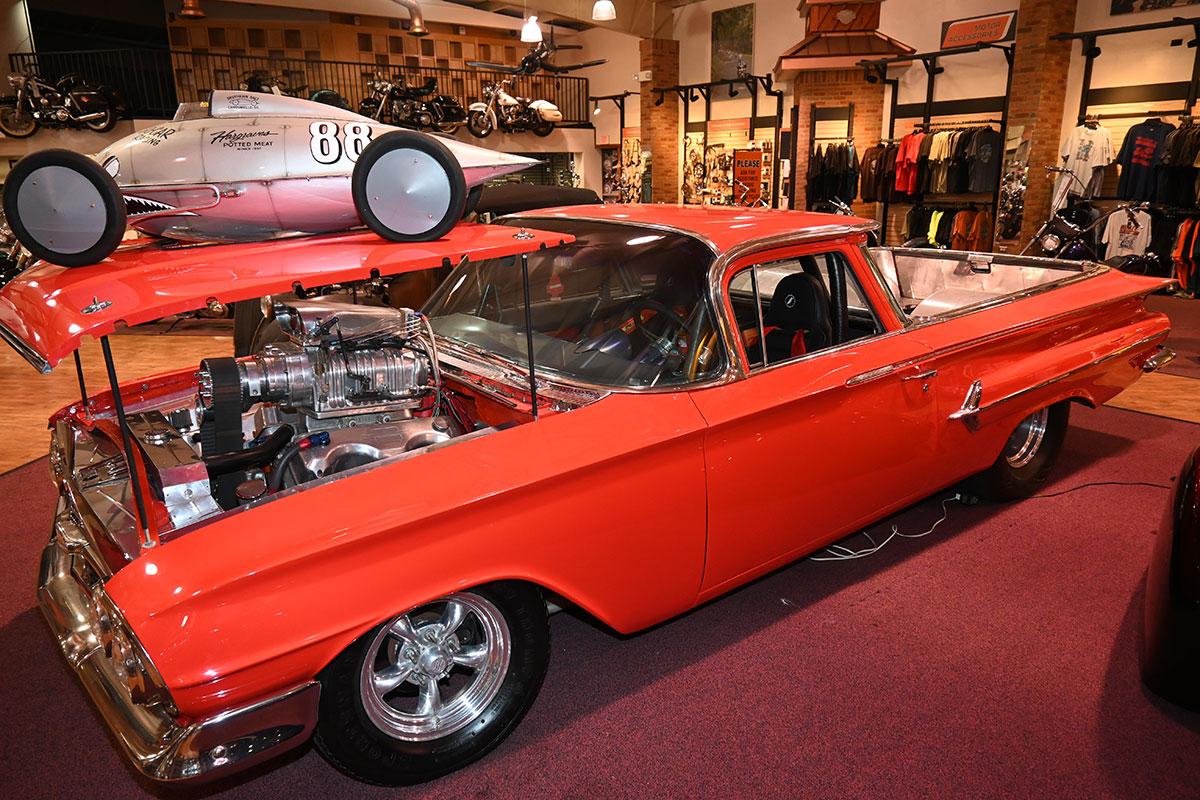 This 1960 Chevrolet El Camino is an uncompromising performance build that blends classic styling with serious race-bred engineering. Finished in bold red, it commands attention instantly and leaves no doubt that this is a purpose-built machine, not just a cruiser.