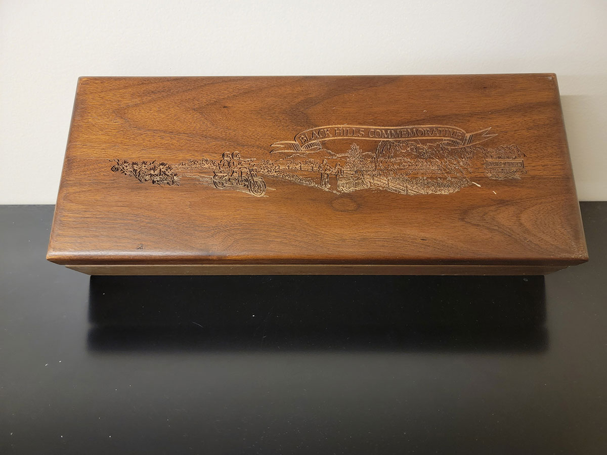 Accented in 22 karat gold, this piece elevates traditional Harley memorabilia into true collector-grade artistry. The Black Hills commemorative series is known for its premium craftsmanship and limited production runs, and this gold edition stands at the top tier.