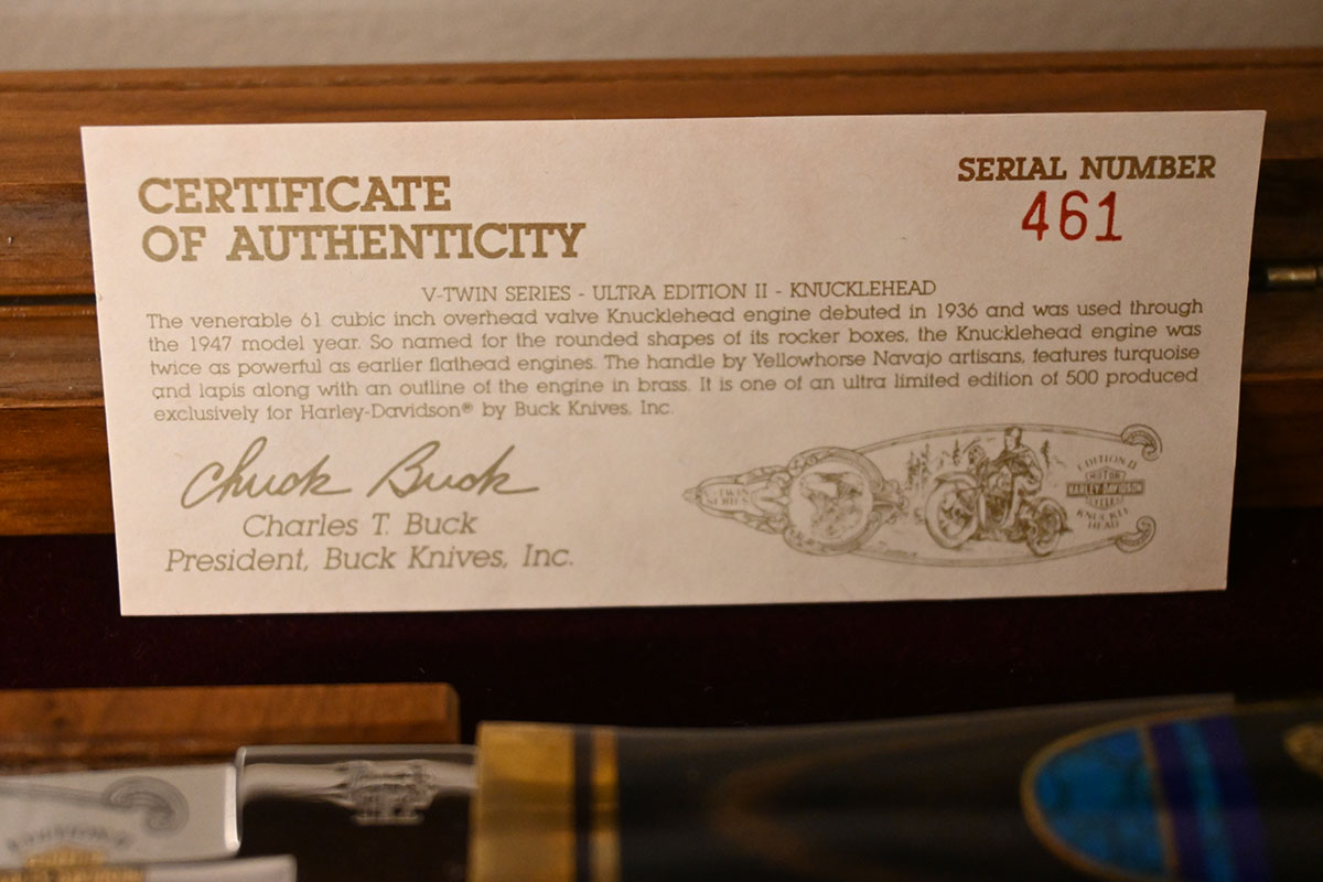 Harley-Davidson Edition 2 Knucklehead Engine Limited Knife #461/500 New with Certificates